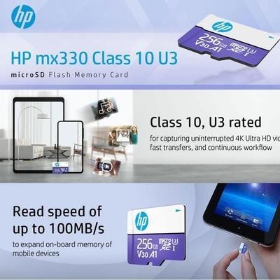Карта флэш-памяти HP mx330 Class 10 U3 V30 microSDXC - 100 МБ/с, класс 10, U3, V30, A1, 4K UHD, Full